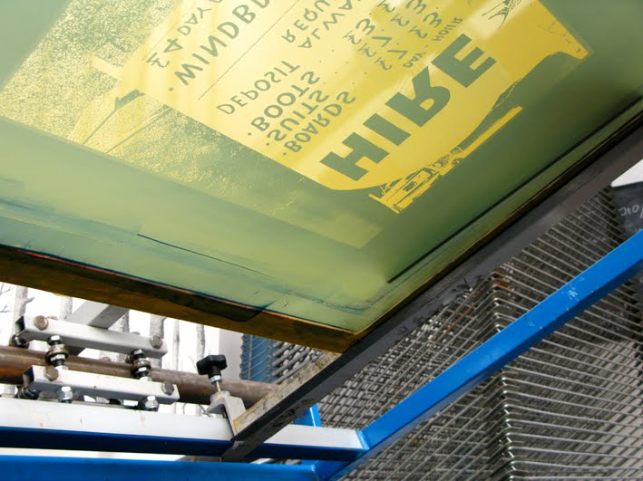 Printing with our new hand bench. Its a great table with loads of adjustment and rock solid registration. We're going to try some short print runs for our new packaging this week.