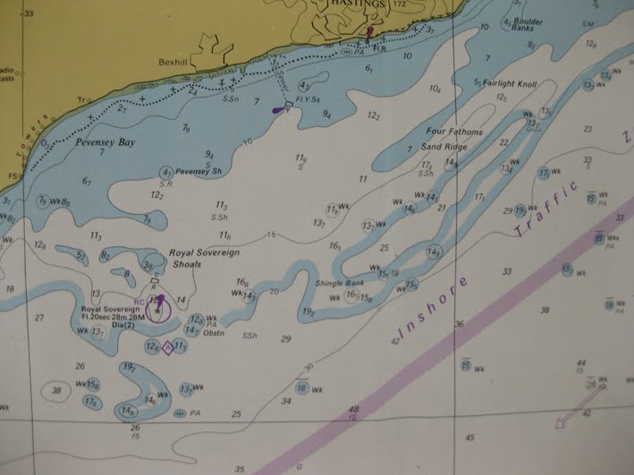 Navigation chart for Pevensey on the Sussex coast. Spent a weekend there right on the beach where the Norman invasion came ashore.
