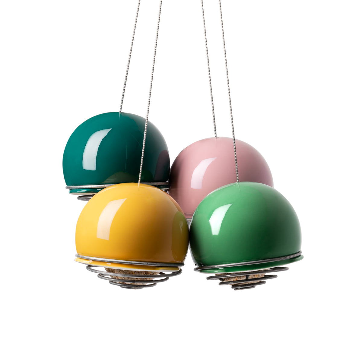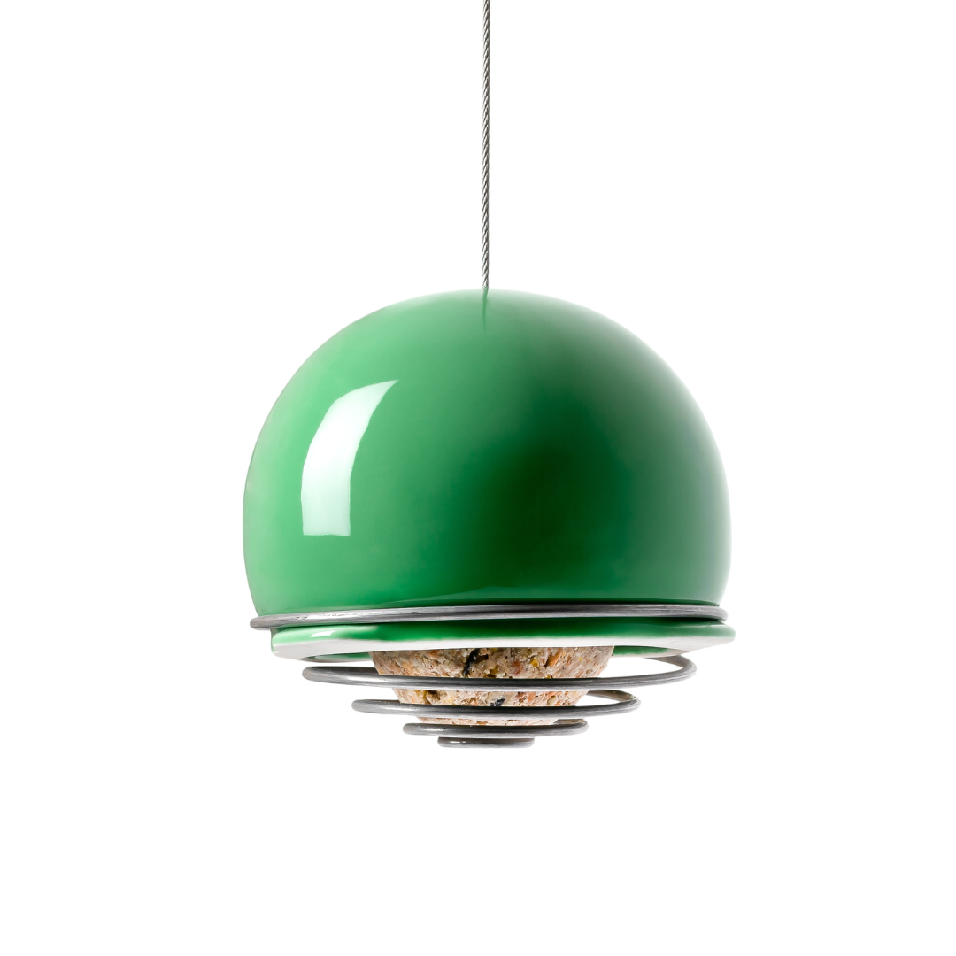 The contemporary Birdball Belle bird feeder is the perfect way to feed small garden birds, such as tits, sparrows, nuthatches and finches, both large and small fat balls, fruit, and kitchen scraps, it can even be used to hold nesting material such as wool.