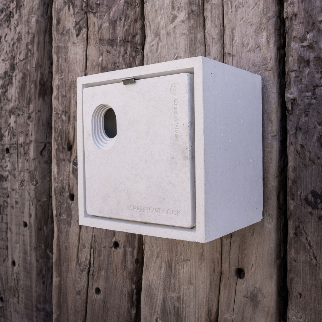The Sparrow Block Sparrow nest box is designed to create nesting space for house sparrows within the framework of new builds or to be retrofitted within existing properties.