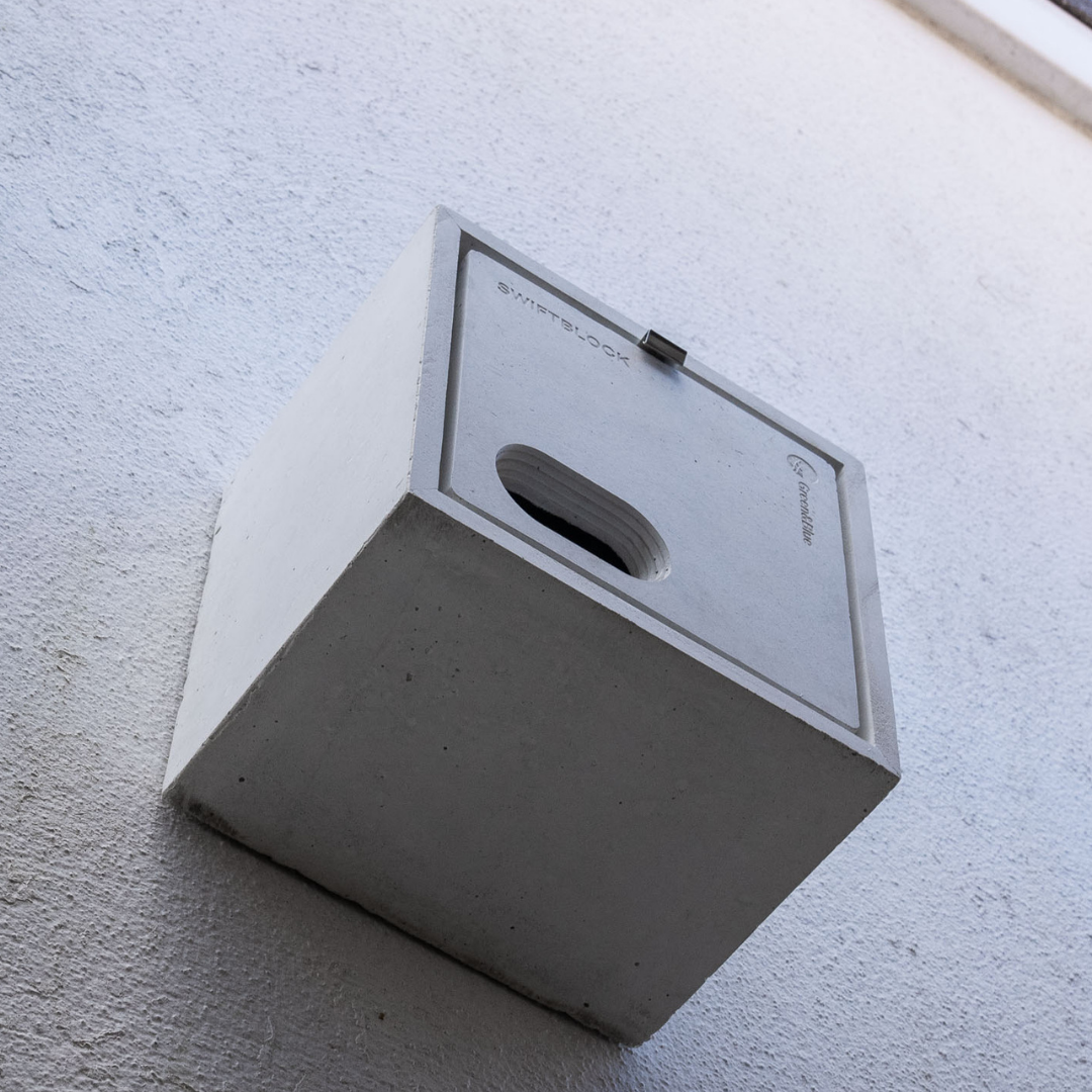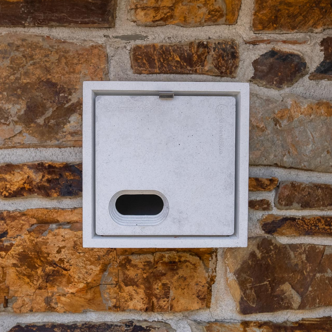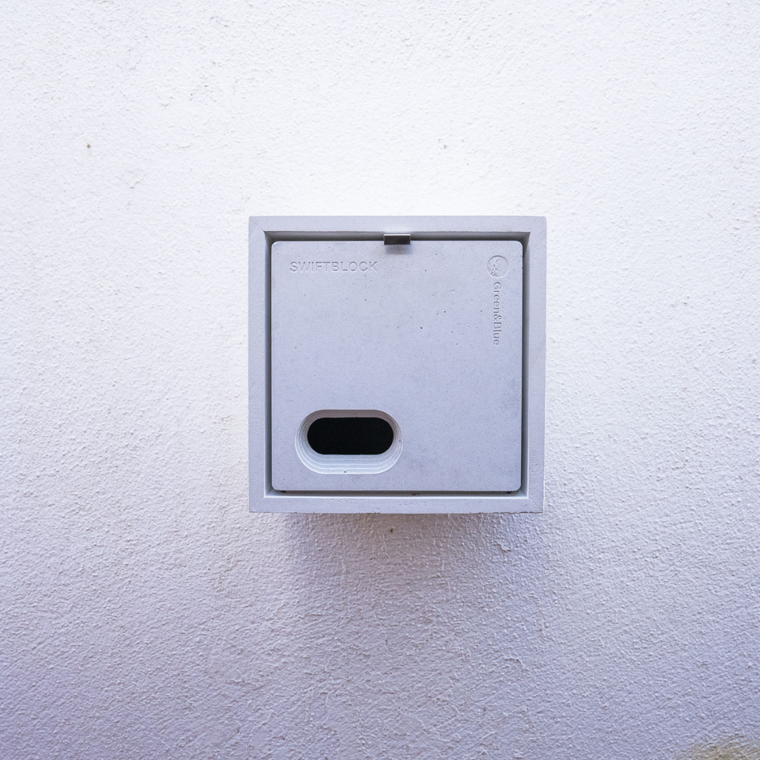 The SwiftBlock nest box is designed to create nesting space for our declining Swift population. This simple, stylish solution can be easily retrofitted or surface mounted onto existing properties or can be integrated into new builds, as desired.
